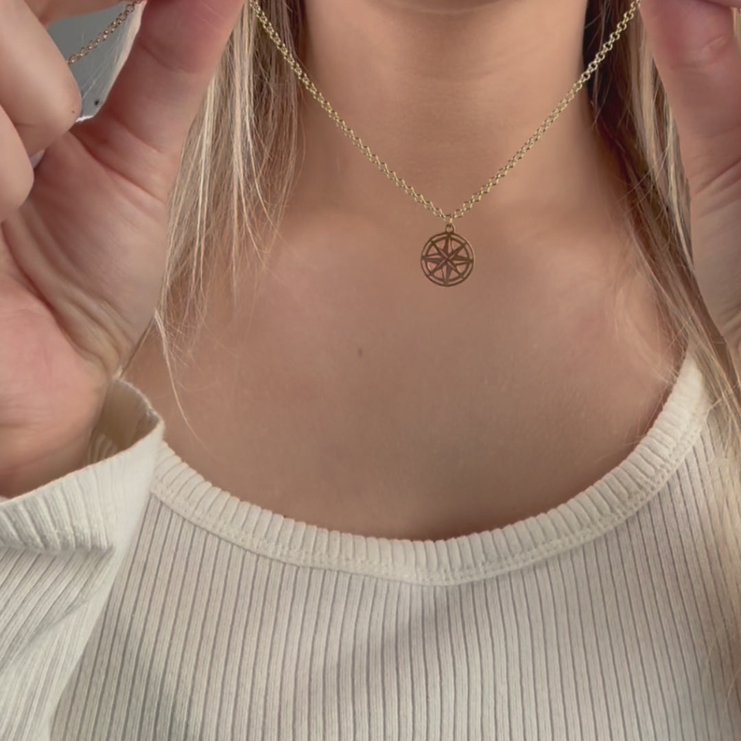 This elegant compass star pendant necklace is a subtle symbol of direction, guidance and meaningful journeys. Featuring a delicate openwork compass design, it’s a timeless piece that layers beautifully or shines on its own as a thoughtful everyday necklace.