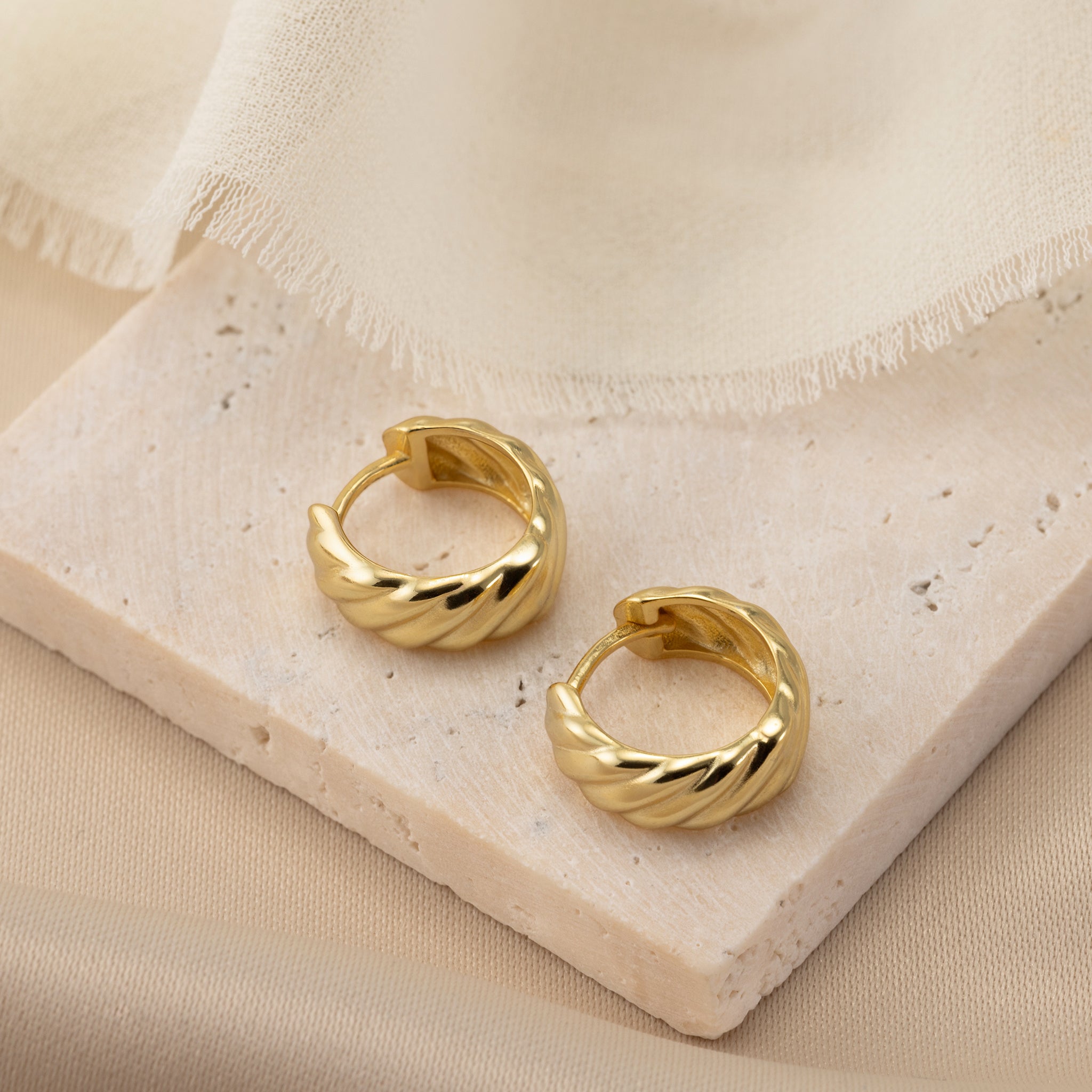 Add a touch of timeless elegance to your jewellery collection with these wide ribbed huggie hoop earrings. Featuring a bold yet refined ribbed design, these earrings are available in both gold and silver finishes, offering versatility to match any style. Their sleek, rounded shape hugs the ear comfortably, secured with an easy-to-use hinged closure. Perfect for elevating everyday outfits or adding a polished finish to evening looks, these earrings are a chic and contemporary accessory for any occasion.