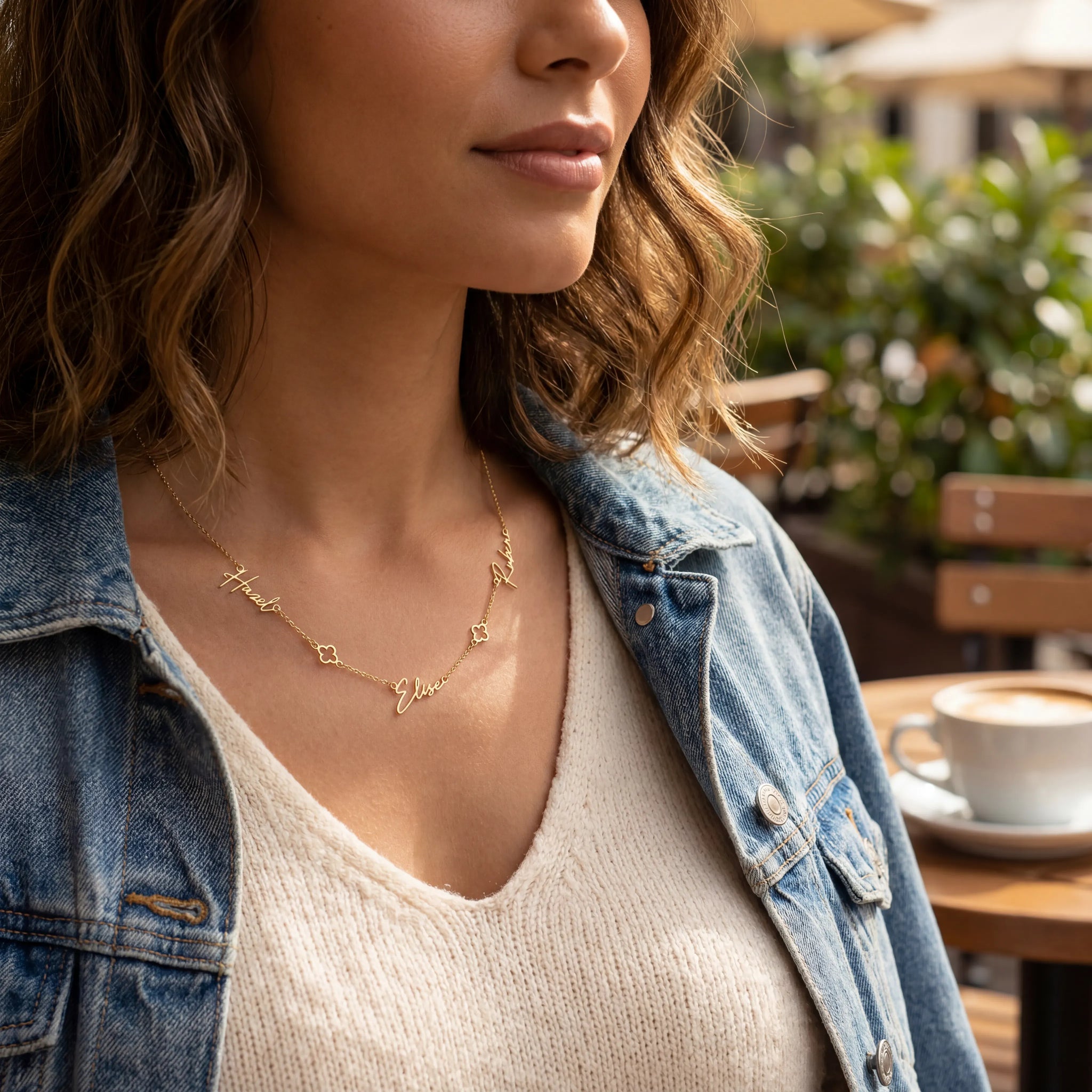 Keep your favourite names close with this elegant triple name necklace, beautifully finished with two clover charms for a touch of luck and charm. Each name flows effortlessly in a script-style design, creating a meaningful piece that feels both modern and sentimental.