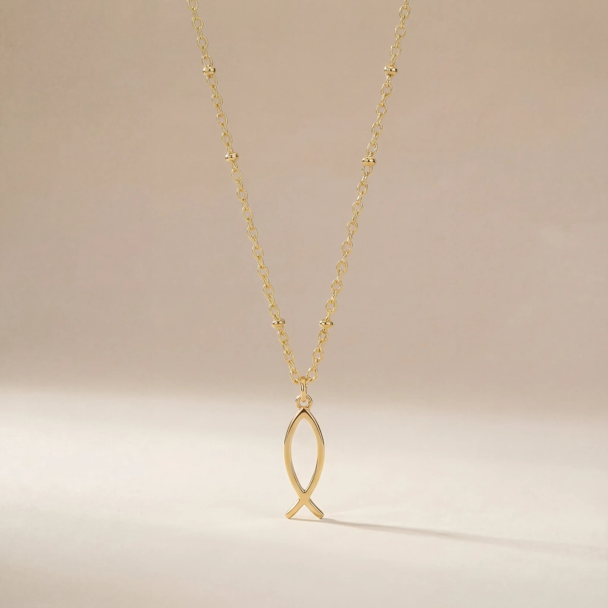 A timeless symbol of faith, this Ichthys Fish Necklace represents devotion and spiritual strength. Crafted with elegance, the simple yet meaningful design makes it a perfect piece for everyday wear or a thoughtful gift. A beautiful expression of belief and tradition, ideal for those who cherish their faith.