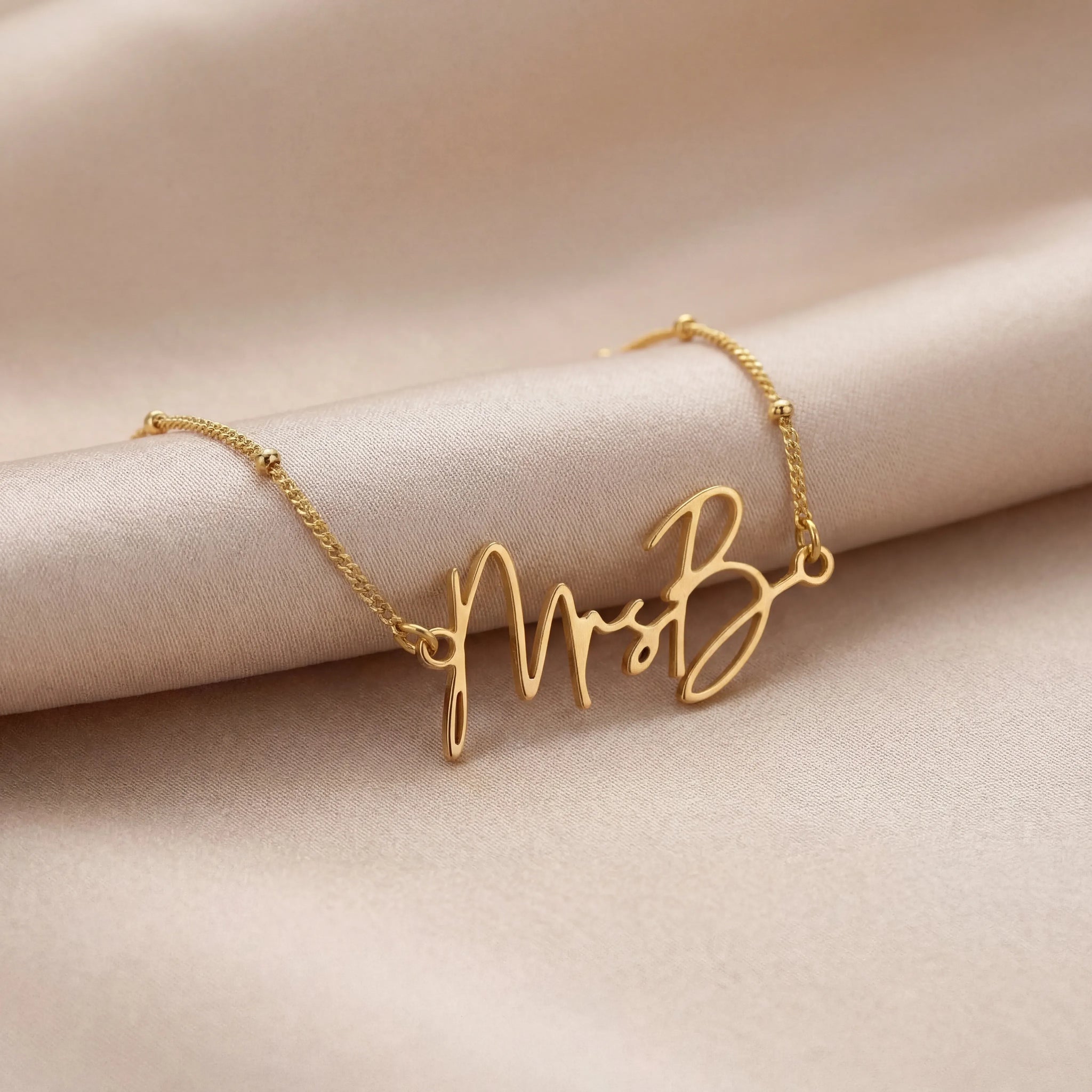 Crafted in sterling silver or 18ct gold plated, it features your chosen name or title in elegant script, paired with a fine chain and adjustable extender.