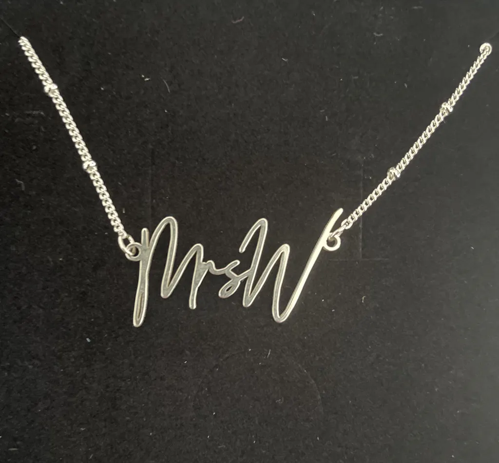 Celebrate a marriage, anniversary, or the special Mrs in your life with a personalised Mrs necklace – a meaningful keepsake made just for her.