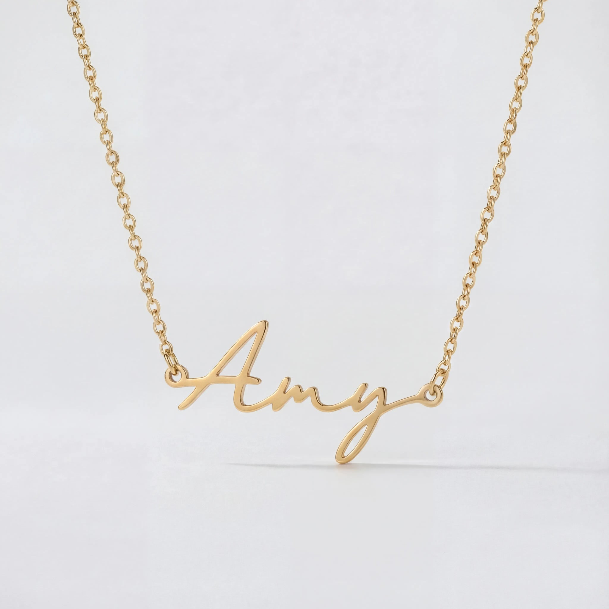 Amy Name Necklace in Gold or Silver – Available in 4 Lengths with Optional Charm