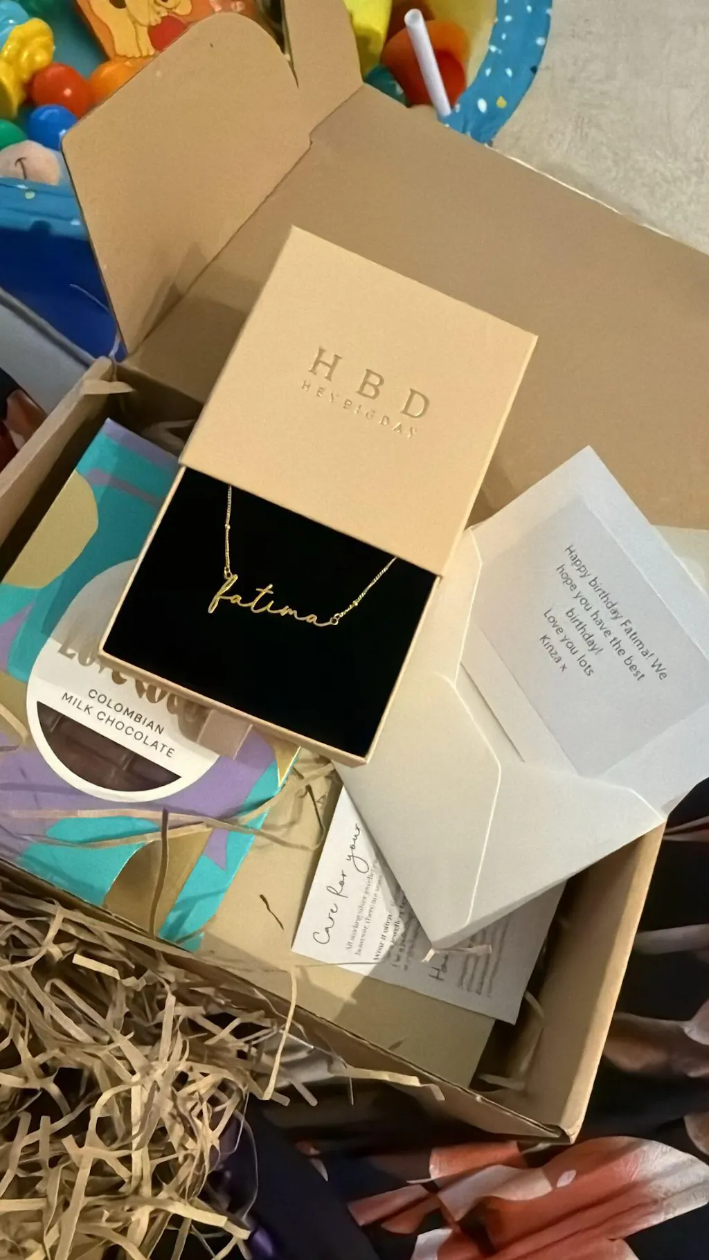 Celebrate any occasion with a gift that feels thoughtful, personal, and beautifully put together. This curated gift set pairs a custom name necklace in your choice of finish with a delicious artisan treat, creating a keepsake they’ll love long after the last bite.