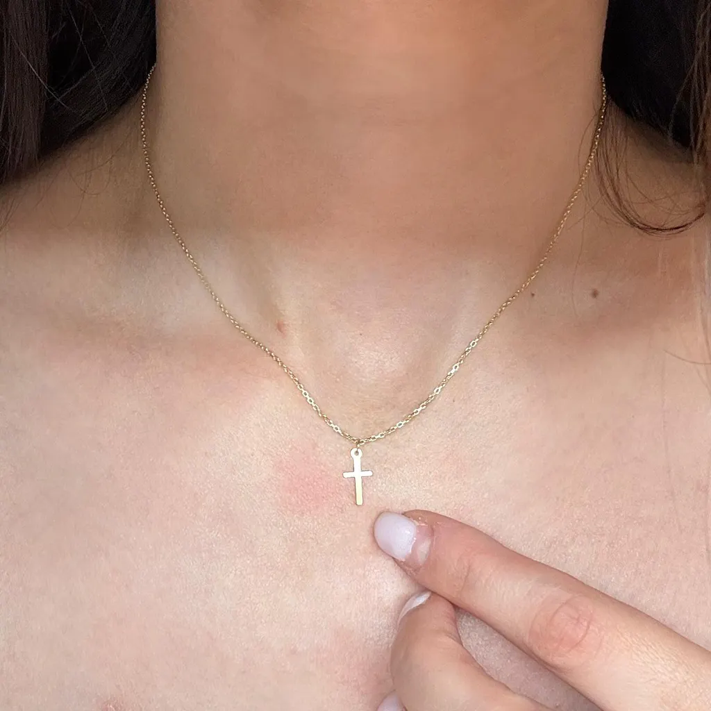 This elegant vertical cross necklace is a timeless symbol, designed with clean lines and a modern silhouette. Simple yet meaningful, it’s a piece that layers beautifully or stands confidently on its own.