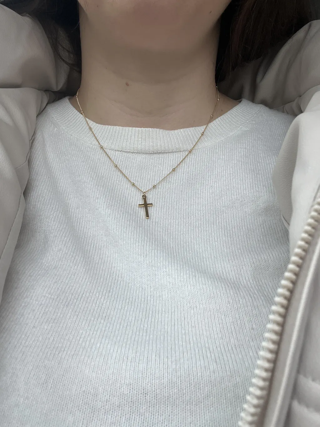 The cross pendant is available in three carefully balanced sizes, as shown in the image, allowing you to choose the look that feels right for you – from subtle and delicate to bold and statement-making.