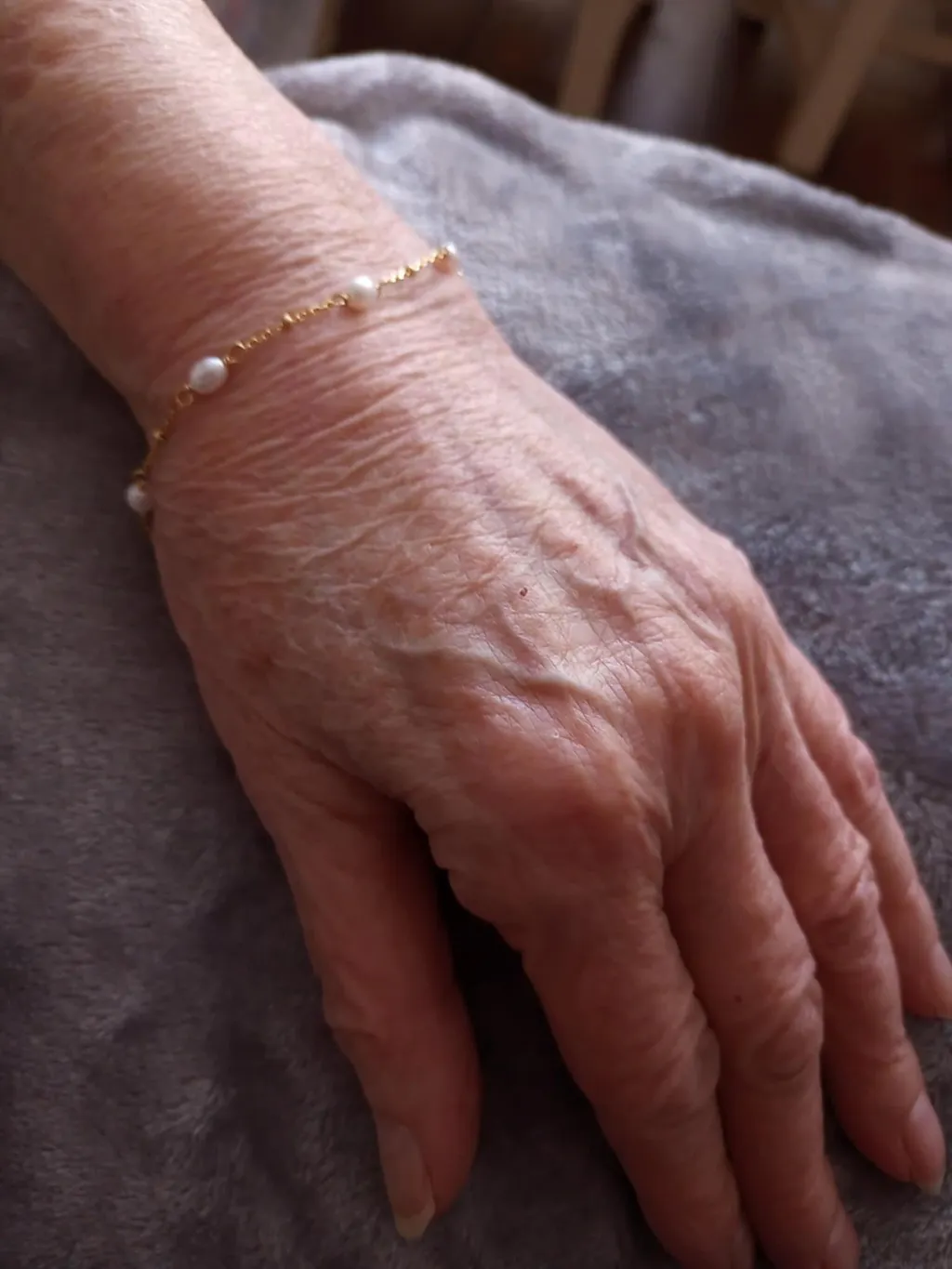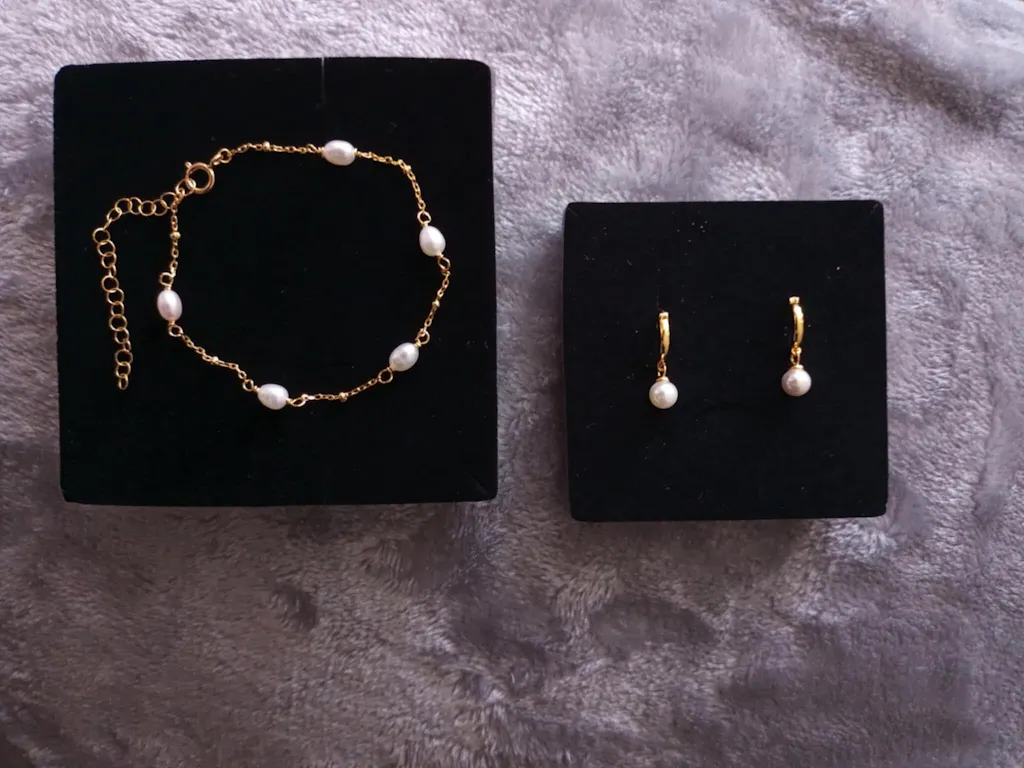 This is the more delicate of our pearl styles, with 4mm white freshwater pearls interspersed with subtle metal spheres along a fine chain. It’s a graceful piece that can be worn on its own or paired with our matching bracelet and earrings for a coordinated look.