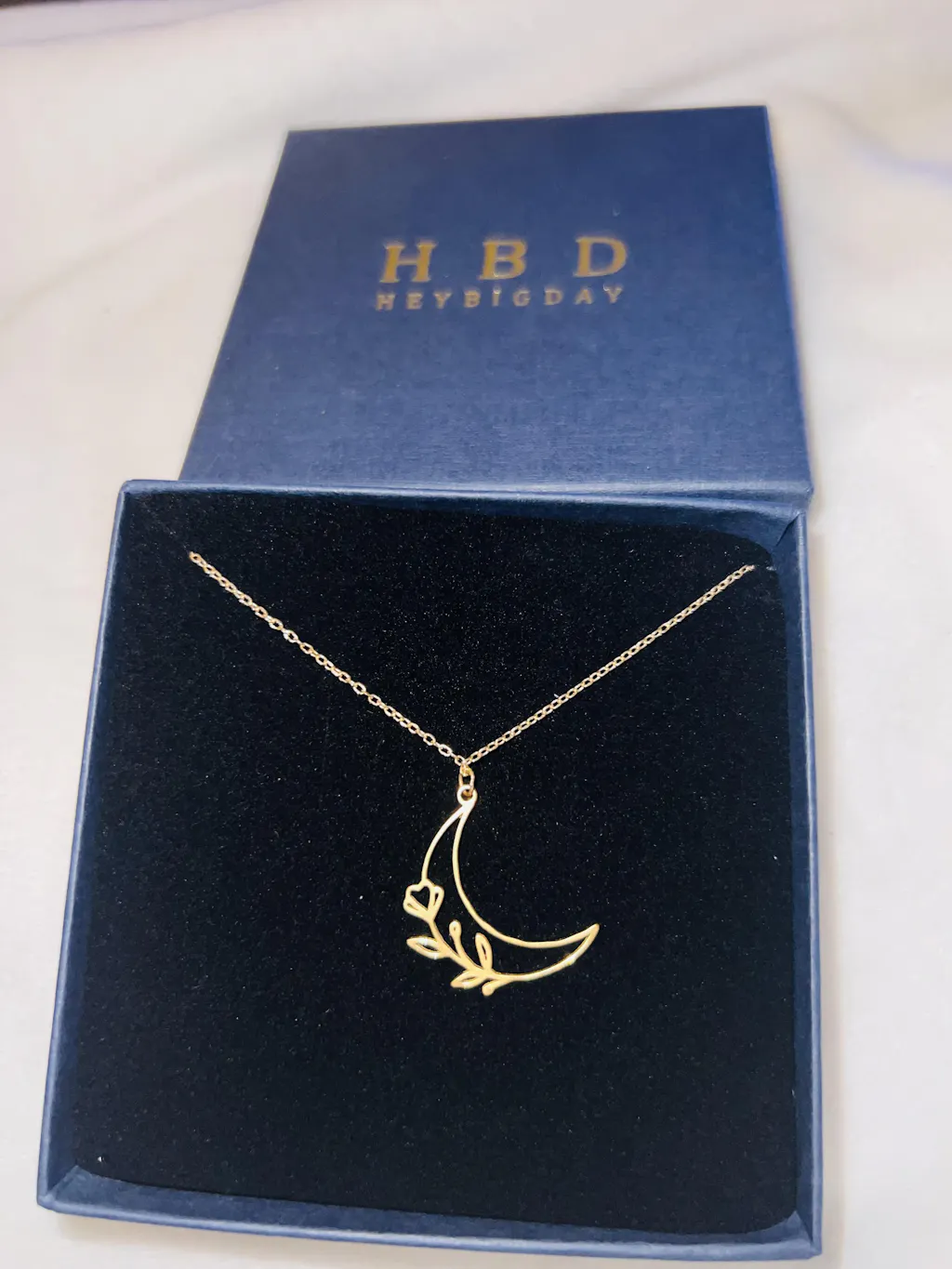 Whimsical, elegant, and full of meaning – the Half Moon & Flower Necklace is a beautiful piece that captures both the magic of the night sky and the grace of nature.