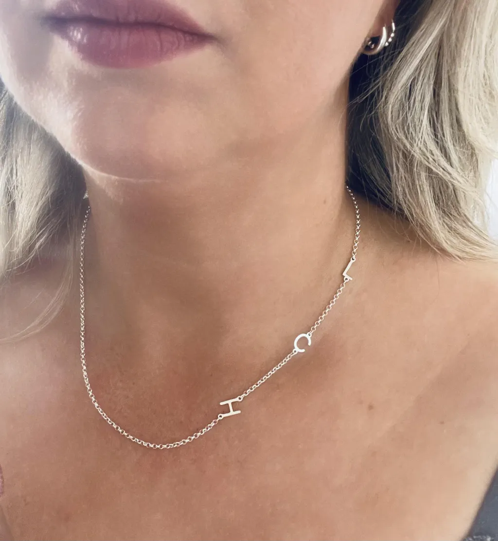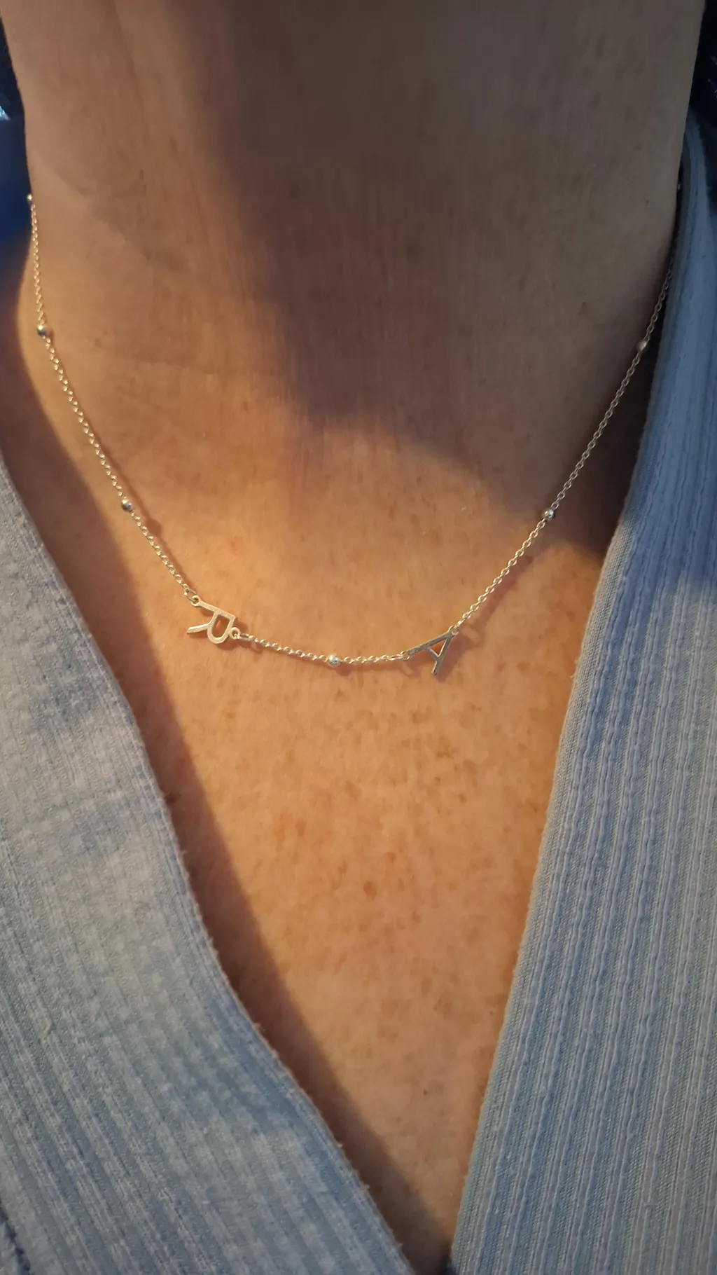 Denna eleganta design har två initialer placerade på sidan på en fin kedja, vilket skapar en elegant, modern silhuett som är perfekt för lager-på-lager-kläder eller vardagsbruk. Välj de bokstäver som betyder mest och bär dem alltid med dig.
