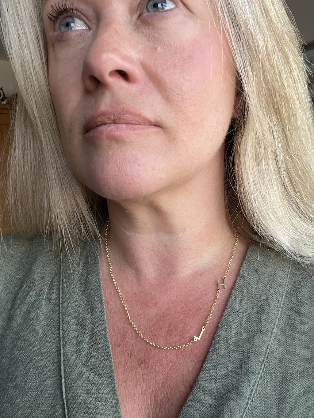 Halsband med dubbelt sidoinitial – ett minimalistiskt men ändå meningsfullt smycke som håller två speciella bokstäver nära ditt hjärta.